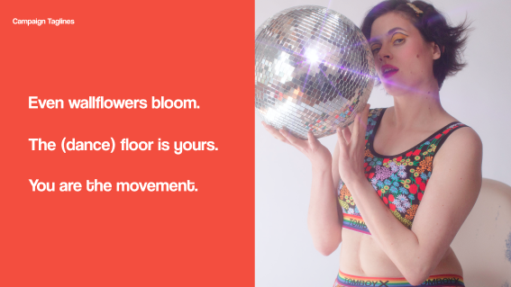 Our Pride ‘22 campaign started with a Pinterest board. Creative Director Charlie Cultrara (hi Charlie! Thanks for your help designing this website!) dreamed up a Studio 54-inspired roller rink photoshoot to bring some extra-sparkly context to the rainbow prints TomboyX is known for. I put on a disco playlist and spent some time stream-of-consciousness brainstorming while looking at the mood board he made, and eventually that huge chunk of text became a streamlined story that encompassed the vibe of the campaign.